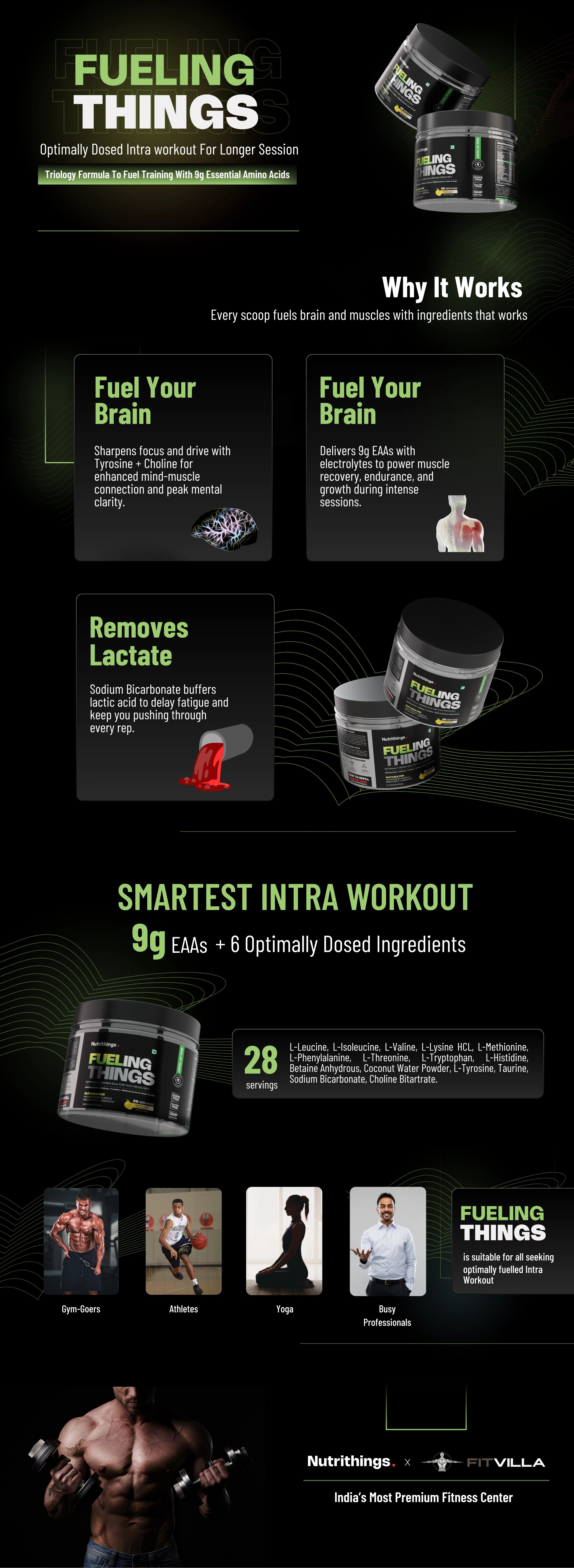 Pre-workouts get you ready, and protein supports recovery afterwards. But Fueling Things dominates during your session, relentlessly feeding muscles to stop breakdown, sustain peak energy, and kickstart immediate repair for tougher, extended training.